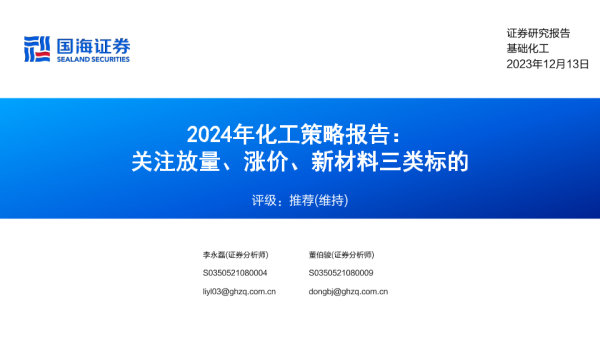 【国海证券】【20231213】2024年化工行业策略报告:关注放量、涨价、新材料三类标的-150页