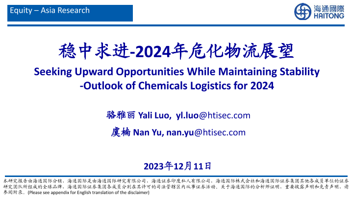 【海通国际】【20231211】2024年危化物流展望:稳中求进-34页