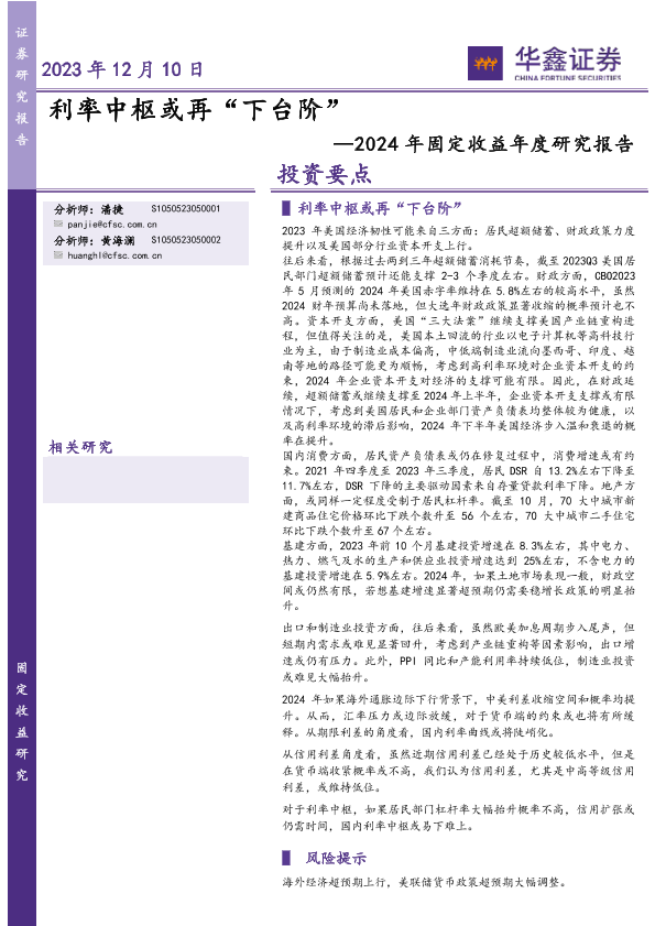 【华鑫证券】【20231210】2024年固定收益年度研究报告:利率中枢或再“下台阶”-23页