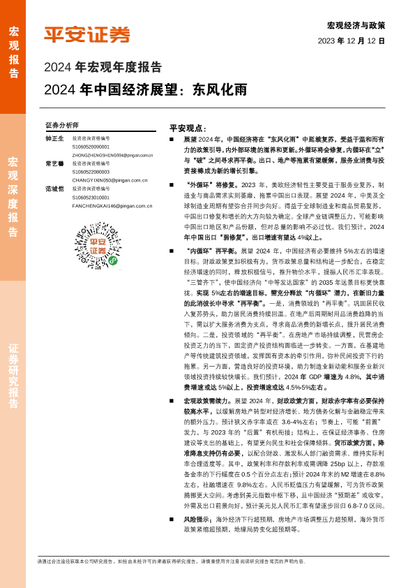 【平安证券】【20231212】2024年宏观年度报告:2024年中国经济展望,东风化雨-36页