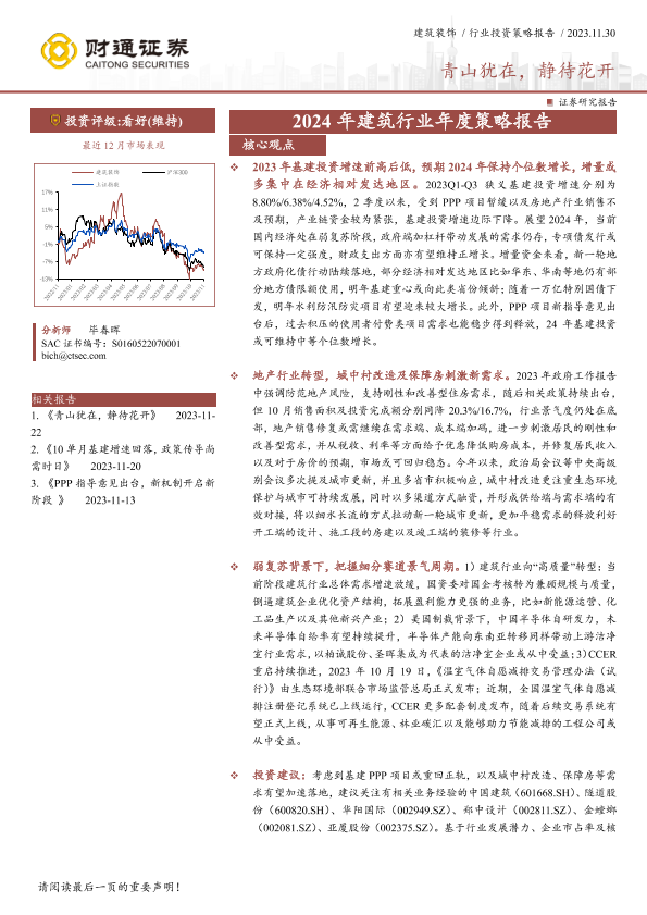 【财通证券】【20231130】2024年建筑行业年度策略报告:青山犹在,静待花开-38页