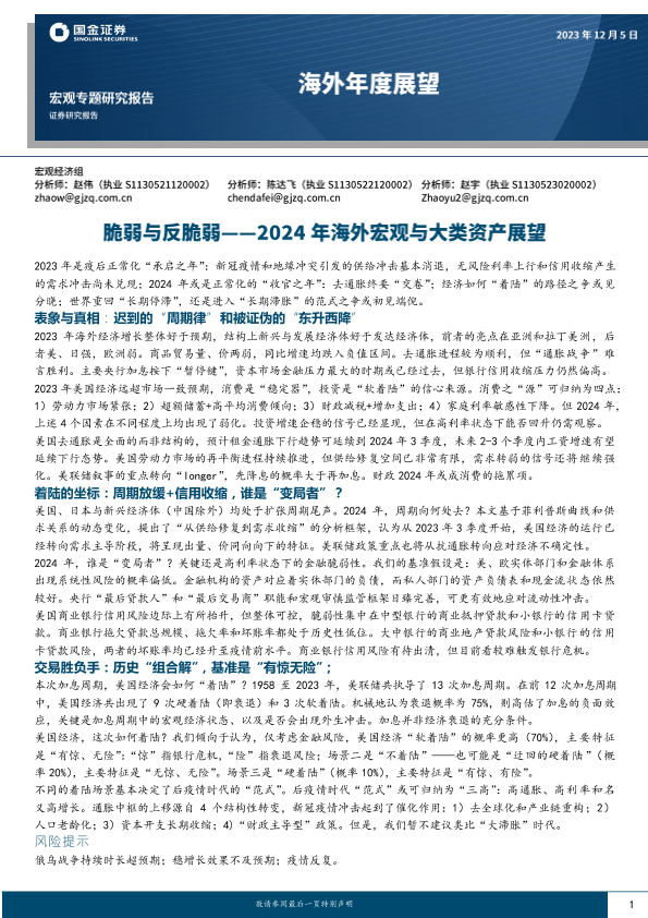 【国金证券】【20231205】2024年海外宏观与大类资产展望:脆弱与反脆弱-26页