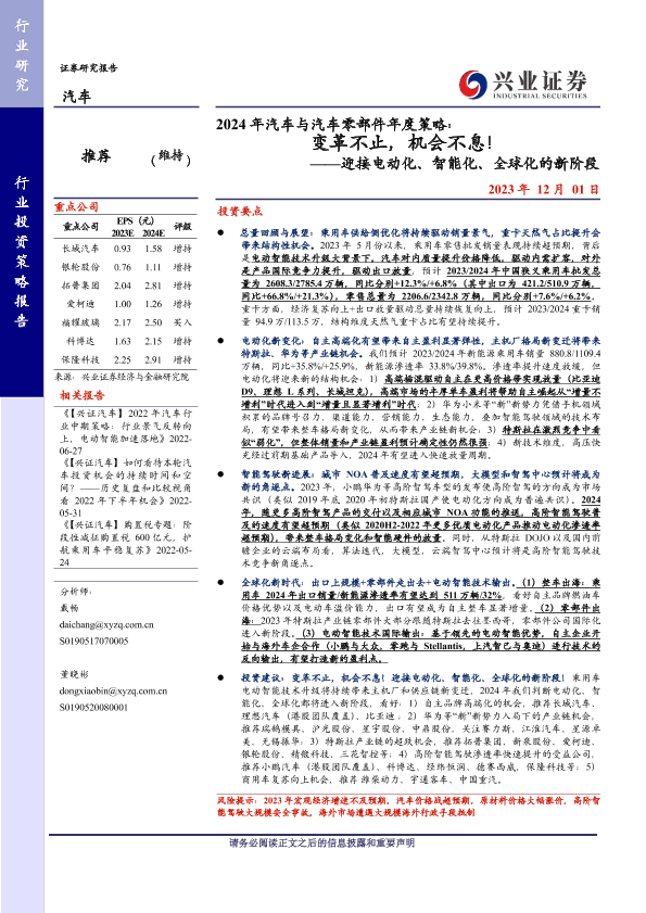 【兴业证券】【20231201】2024年汽车与汽车零部件行业年度策略:迎接电动化、智能化、全球化的新阶段,变革不止,机会不息!-57页
