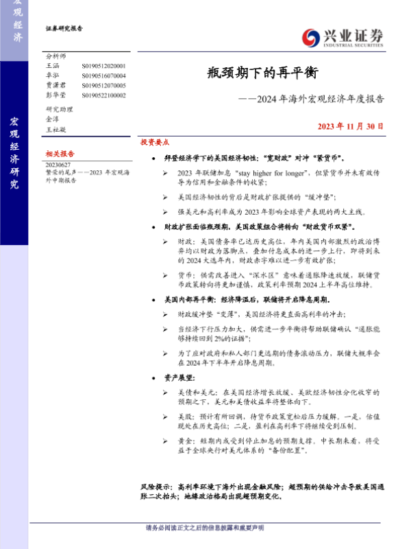 【兴业证券】【20231130】瓶颈期下的再平衡——2024年海外宏观经济年度报告-25页