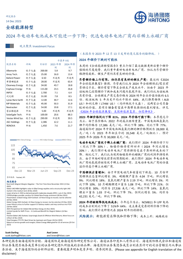 【海通国际】【20231214】2024年电动车电池成本可能进一步下降;优选电动车电池厂商而非稀土永磁厂商-18页