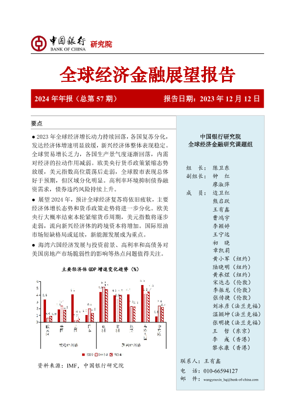 【中国银行研究院】【20231212】中国银行全球经济金融展望报告(2024年):全球经济复苏疲软,货币政策取向分化-52页