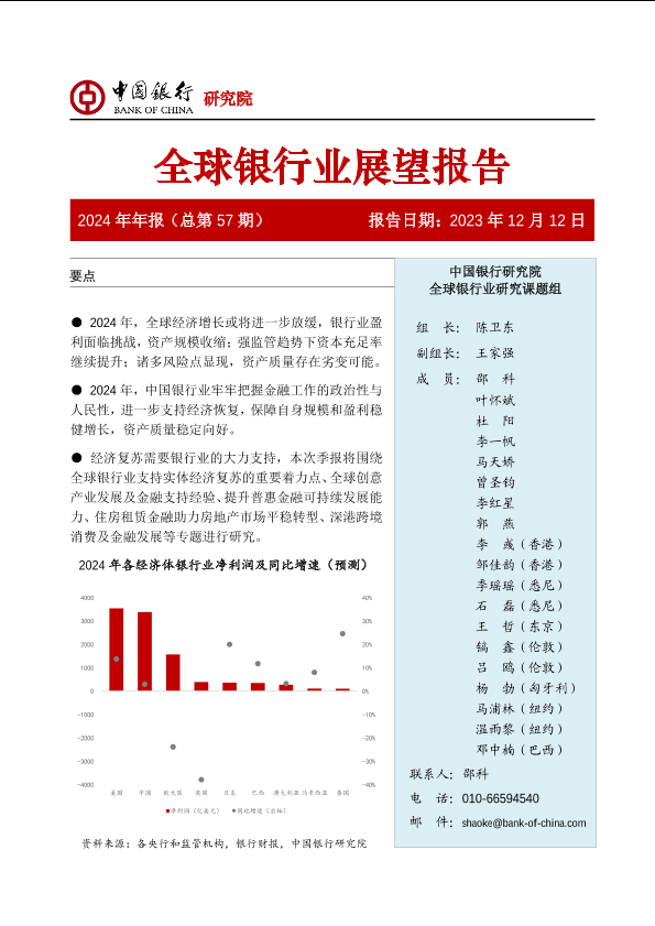 【中国银行研究院】【20231212】中国银行全球银行业展望报告(2024年):银行业支持经济加快复苏-60页