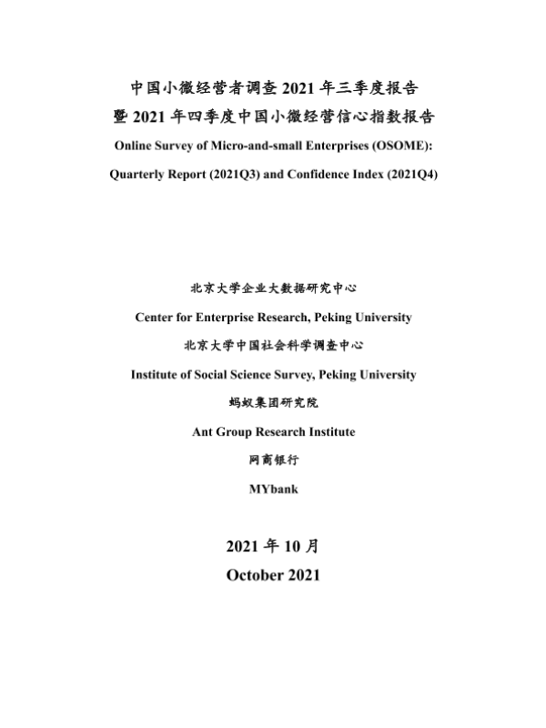 【北京大学&蚂蚁集团】【202110】中国小微经营者调查2021年三季度报告-32页