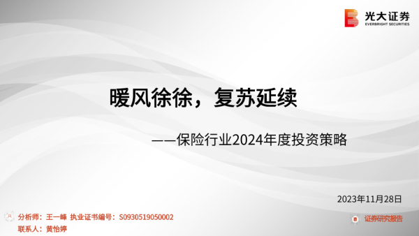 【光大证券】【20231128】保险行业2024年度投资策略:暖风徐徐,复苏延续-39页