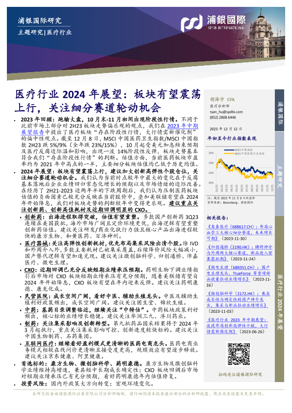 【浦银国际】【20231212】医疗行业2024年展望:板块有望震荡上行,关注细分赛道轮动机会-48页
