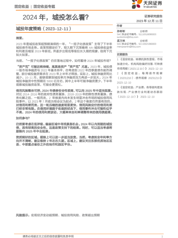 【天风证券】【20231211】城投年度策略:2024年,城投怎么看?-32页