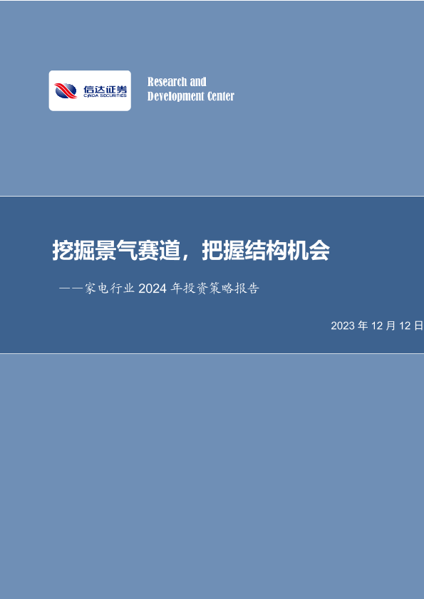 【信达证券】【20231212】家电行业2024年投资策略报告:挖掘景气赛道,把握结构机会-31页