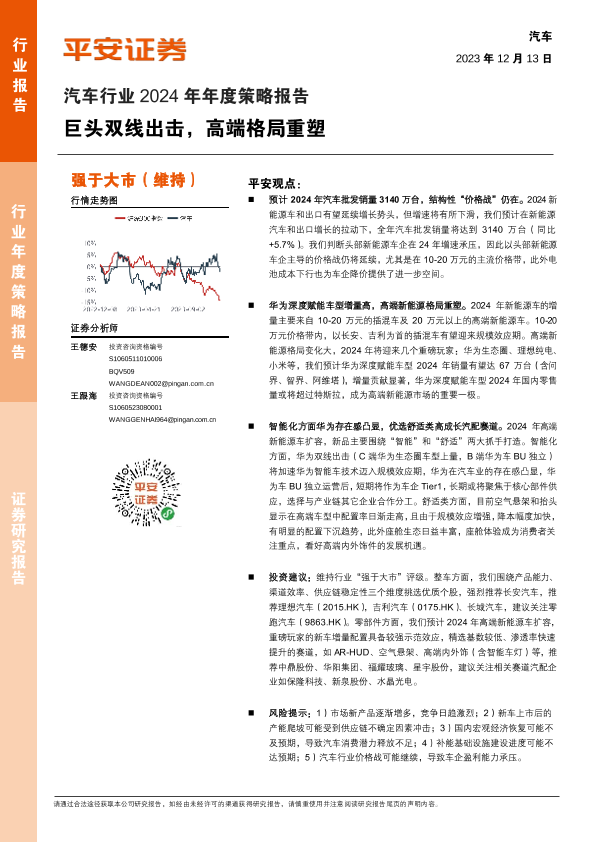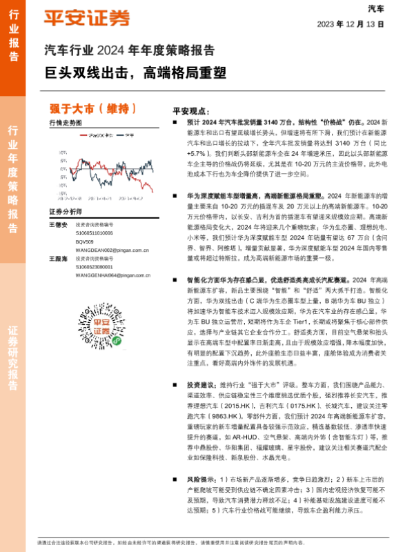 【平安证券】【20231213】汽车行业2024年年度策略报告:巨头双线出击,高端格局重塑-32页