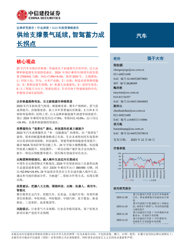 【中信建投证券】【20231204】汽车行业2024年投资策略报告:供给支撑景气延续,智驾蓄力成长拐点-63页