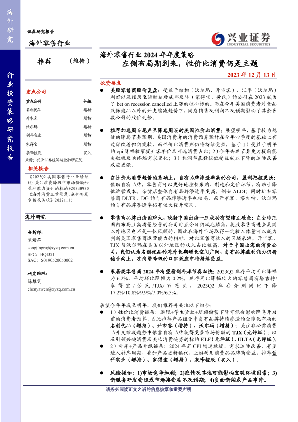【兴业证券】【20231213】海外零售行业2024年年度策略:左侧布局期到来,性价比消费仍是主题-50页