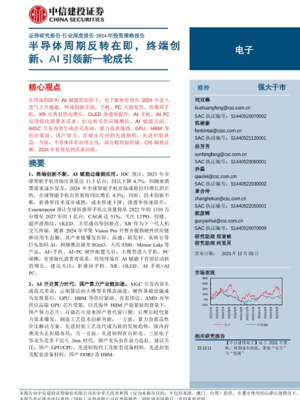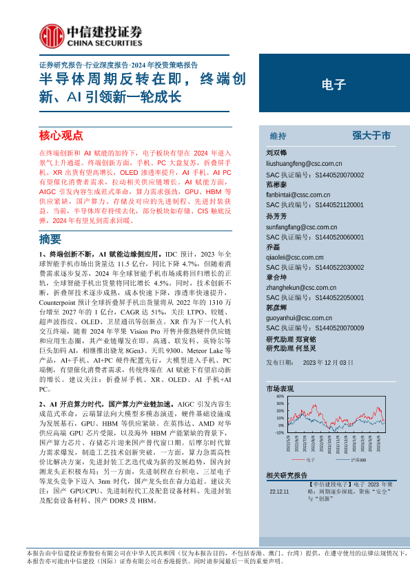 【中信建投证券】【20231203】电子行业深度报告·2024年投资策略报告:半导体周期反转在即,终端创新、AI引领新一轮成长-86页