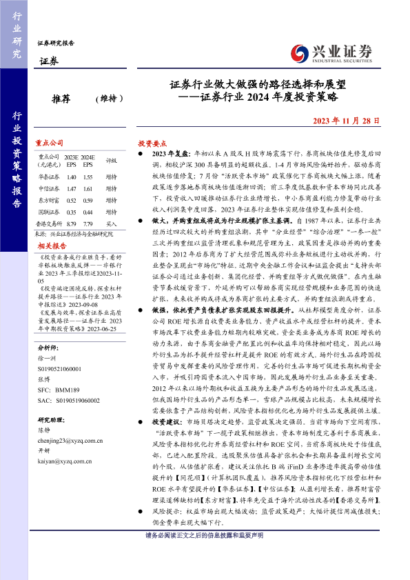 【兴业证券】【20231128】证券行业2024年度投资策略:证券行业做大做强的路径选择和展望-35页