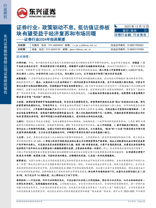 【东兴证券】【20231212】证券行业2024年投资展望:政策驱动不息,低估值证券板块有望受益于经济复苏和市场回暖-23页