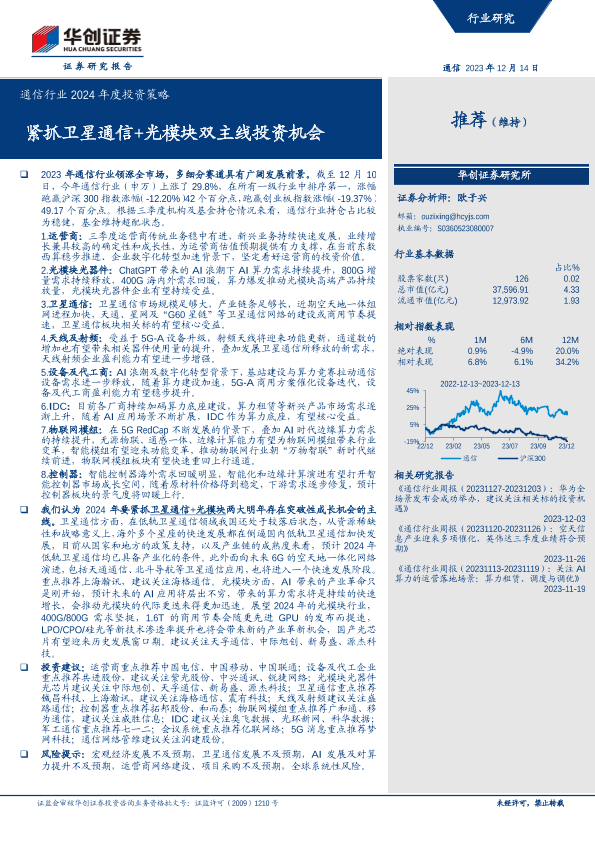 【华创证券】【20231214】通信行业2024年度投资策略:紧抓卫星通信+光模块双主线投资机会-72页