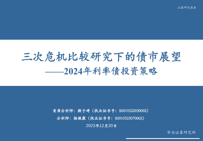 【华安证券】【20231220】2024年利率债投资策略:三次危机比较研究下的债市展望-44页
