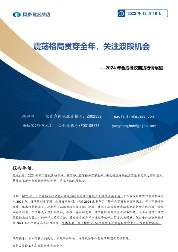 【国泰君安期货】【20231218】2024年合成橡胶期货行情展望:震荡格局贯穿全年,关注波段机会-21页