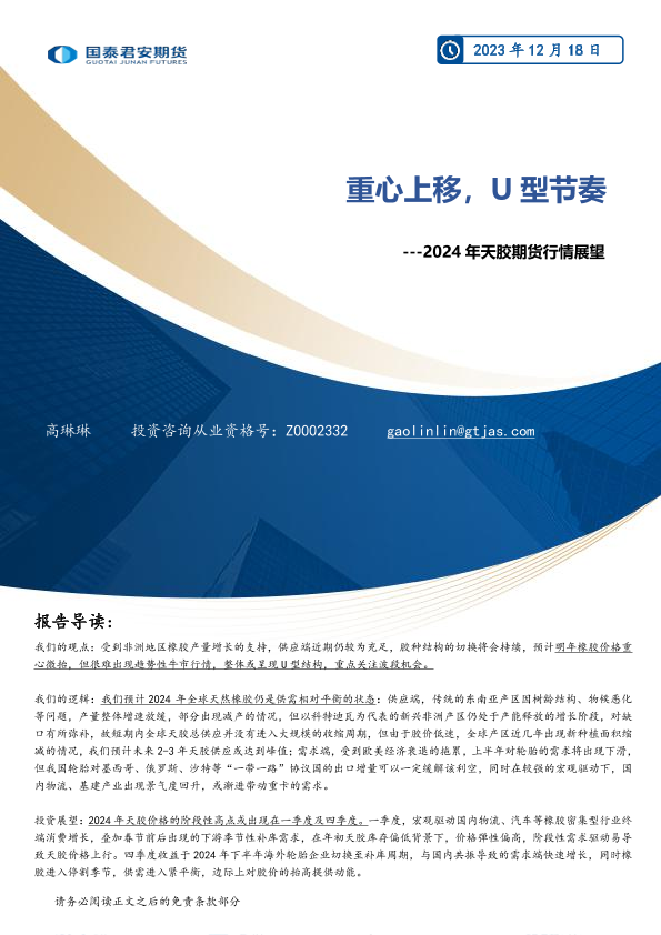 【国泰君安期货】【20231218】2024年天胶期货行情展望:重心上移,U型节奏-23页