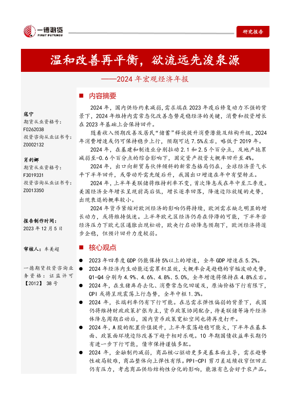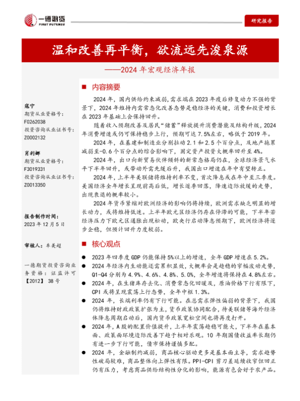 【一德期货】【20231205】2024年宏观经济年报:温和改善再平衡,欲流远先浚泉源-23页