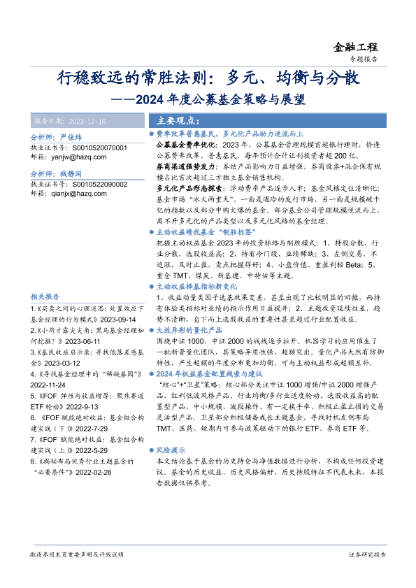 【华安证券】【20231216】2024年度公募基金策略与展望:行稳致远的常胜法则:多元、均衡与分散-33页