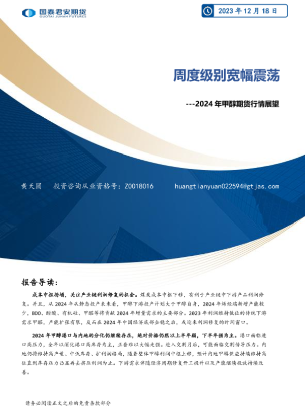 【国泰君安期货】【20231218】2024年甲醇期货行情展望:周度级别宽幅震荡-17页