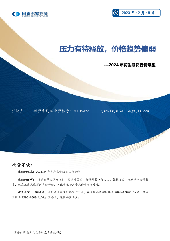【国泰君安期货】【20231218】2024年花生期货行情展望:压力有待释放,价格趋势偏弱-11页