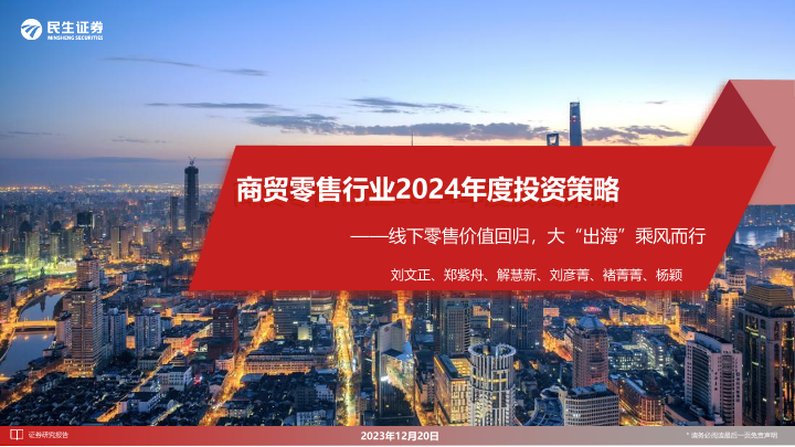 【民生证券】【20231220】商贸零售行业2024年度投资策略:线下零售价值回归,大“出海”乘风而行-122页