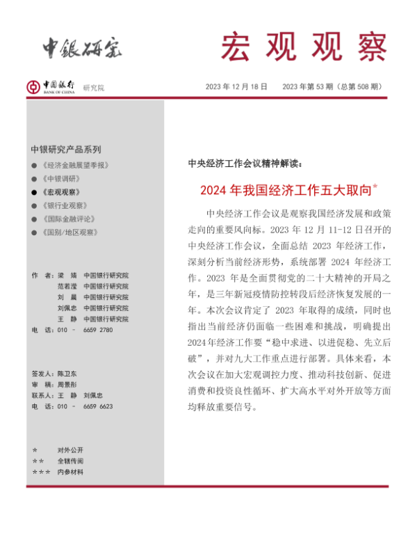 【中国银行研究院】【20231218】中央经济工作会议精神解读:2024年我国经济工作五大取向-13页