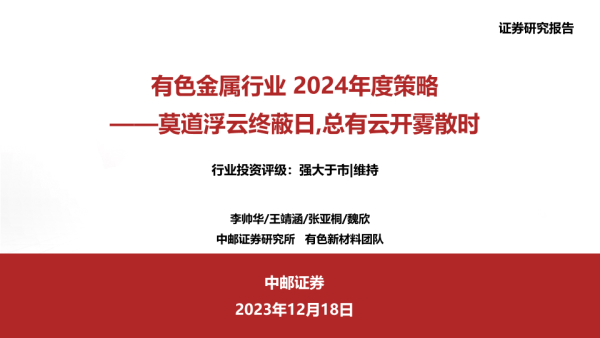 【中邮证券】【20231218】有色金属行业2024年度策略:莫道浮云终蔽日,总有云开雾散时-100页