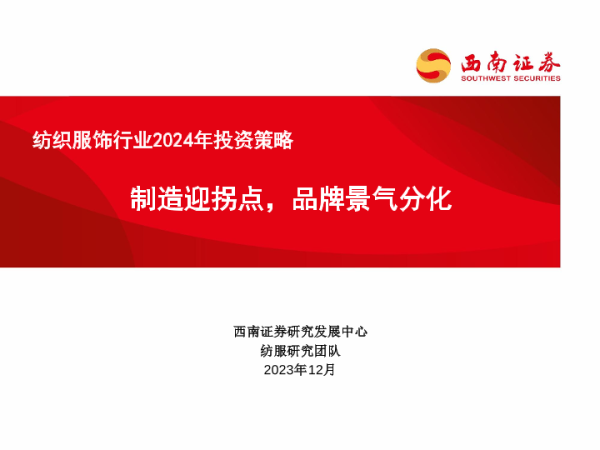 【西南证券】【20231220】纺织服饰行业2024年投资策略:制造迎拐点,品牌景气分化-49页