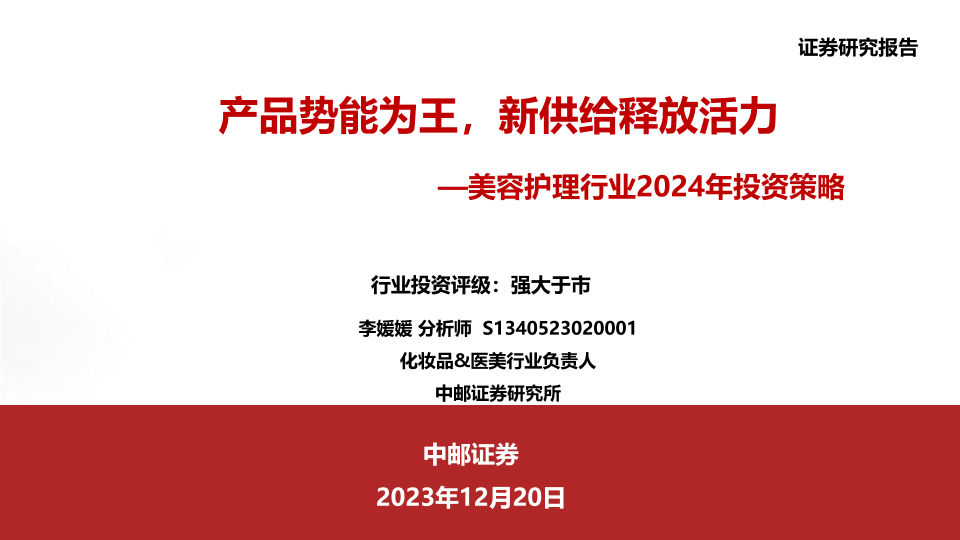 【中邮证券】【20231220】美容护理行业2024年投资策略:产品势能为王,新供给释放活力-32页