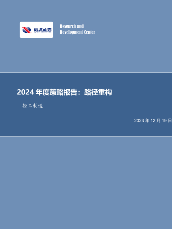 2024年度策略 投资策略 行业分析 路径重构 轻工制造