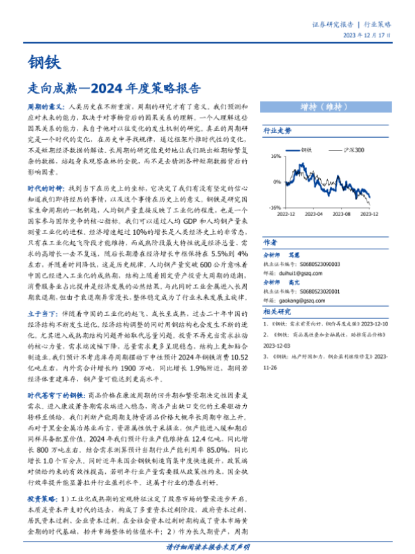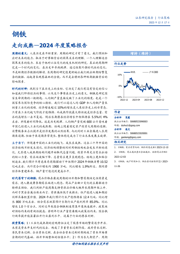 【国盛证券】【20231217】钢铁2024年度策略报告:走向成熟-36页