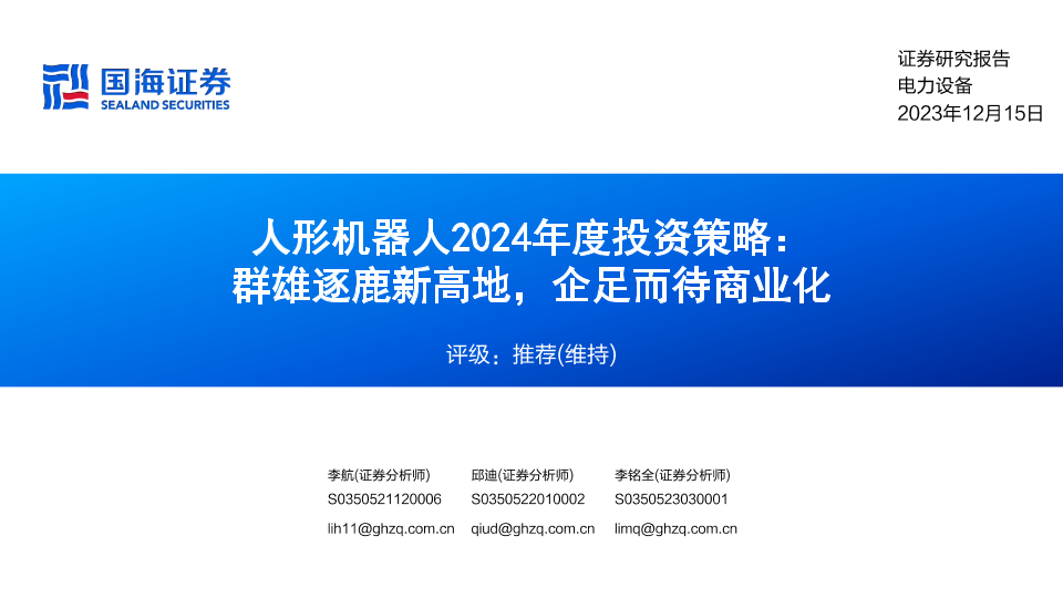 【国海证券】【20231215】人形机器人2024年度投资策略:群雄逐鹿新高地,企足而待商业化-29页