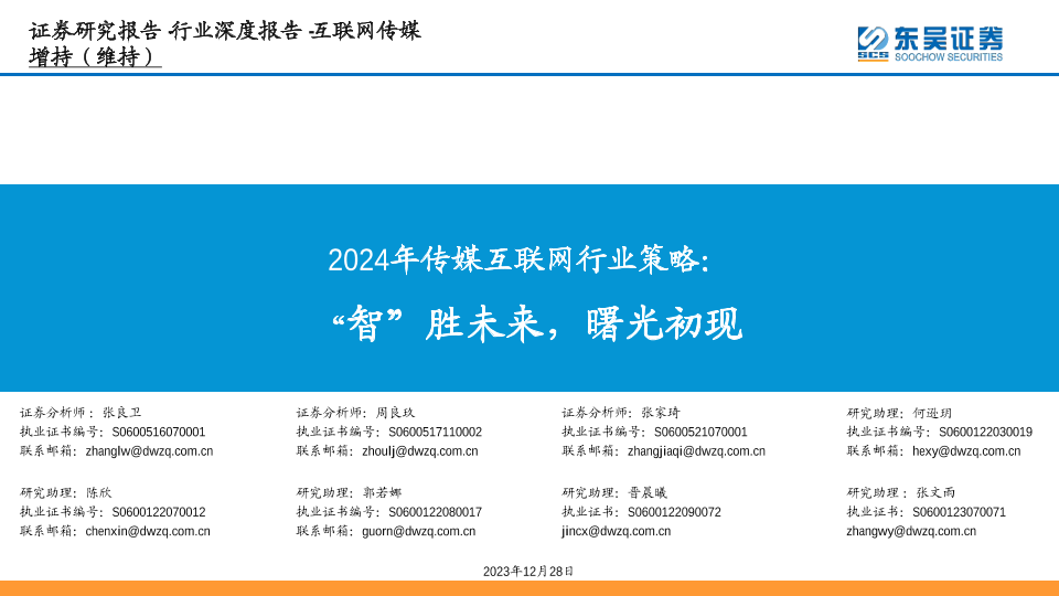 【东吴证券】【20231228】2024年传媒互联网行业策略:“智”胜未来,曙光初现-66页