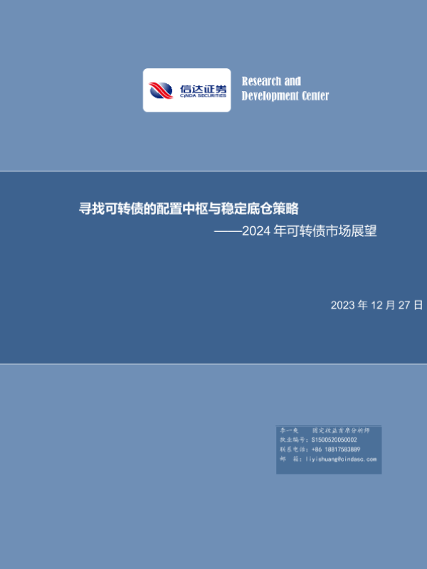 【信达证券】【20231227】2024年可转债市场展望:寻找可转债的配置中枢与稳定底仓策略-28页