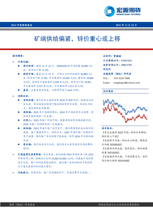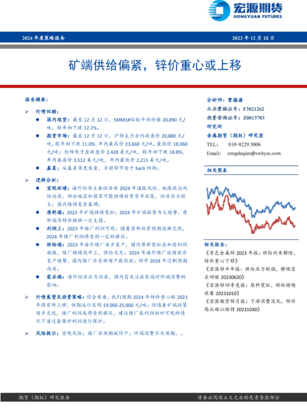 【宏源期货】【20231215】2024年度策略报告:矿端供给偏紧,锌价重心或上移-19页