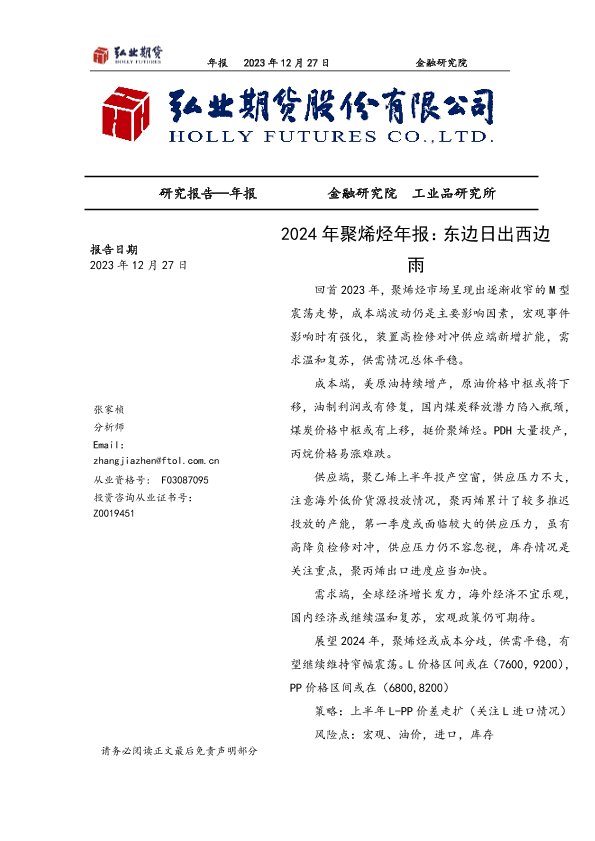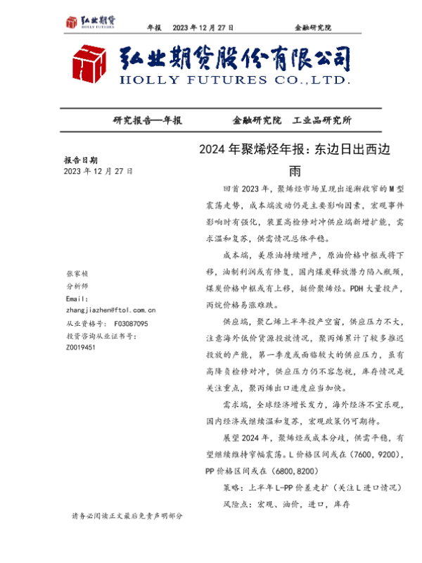 【弘业期货】【20231227】2024年聚烯烃年报:东边日出西边雨-20页