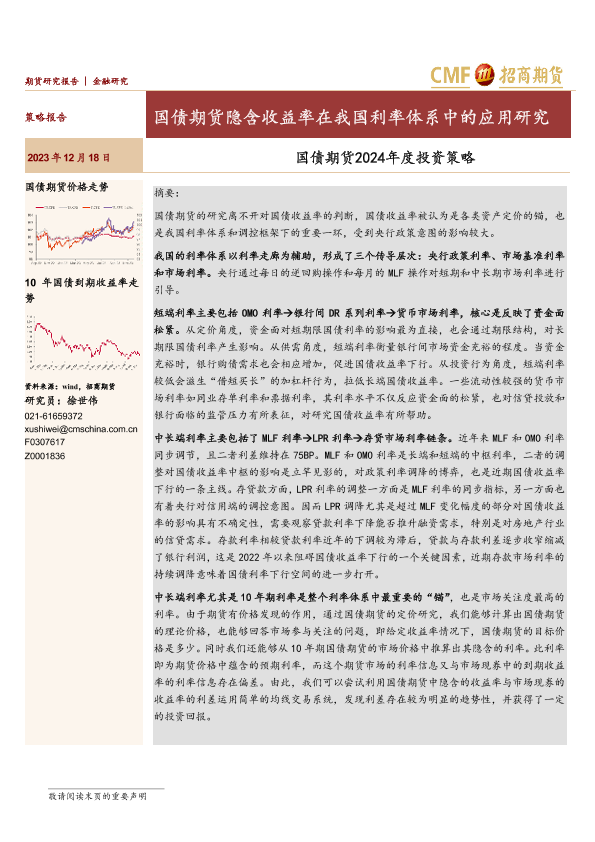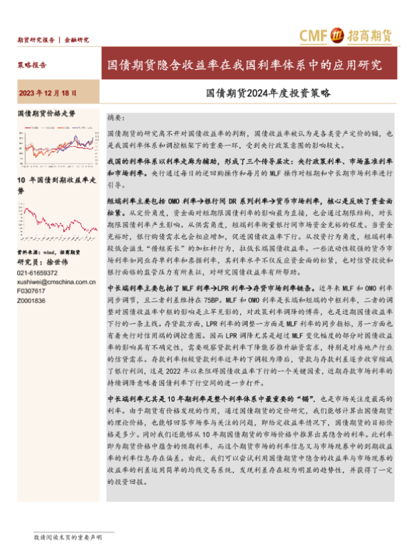 【招商期货】【20231218】国债期货2024年度投资策略:国债期货隐含收益率在我国利率体系中的应用研究-15页