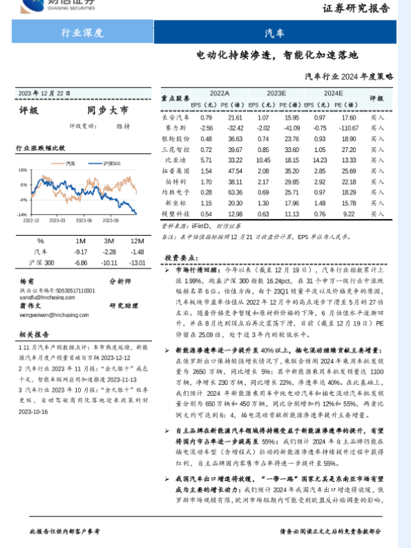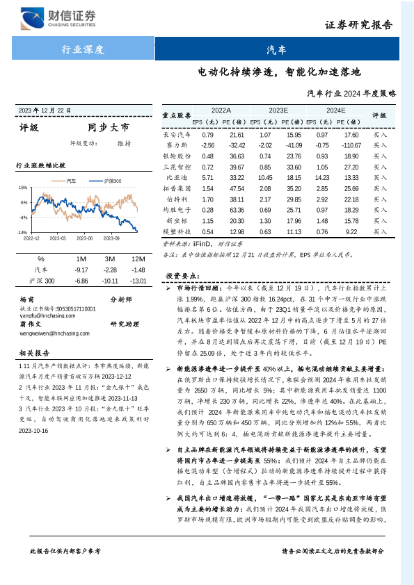【财信证券】【20231222】汽车行业2024年度策略:电动化持续渗透,智能化加速落地-21页