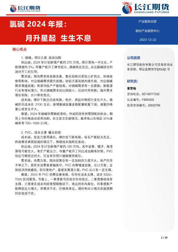 【长江期货】【20231222】氯碱2024年报:月升星起 生生不息-19页
