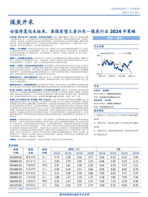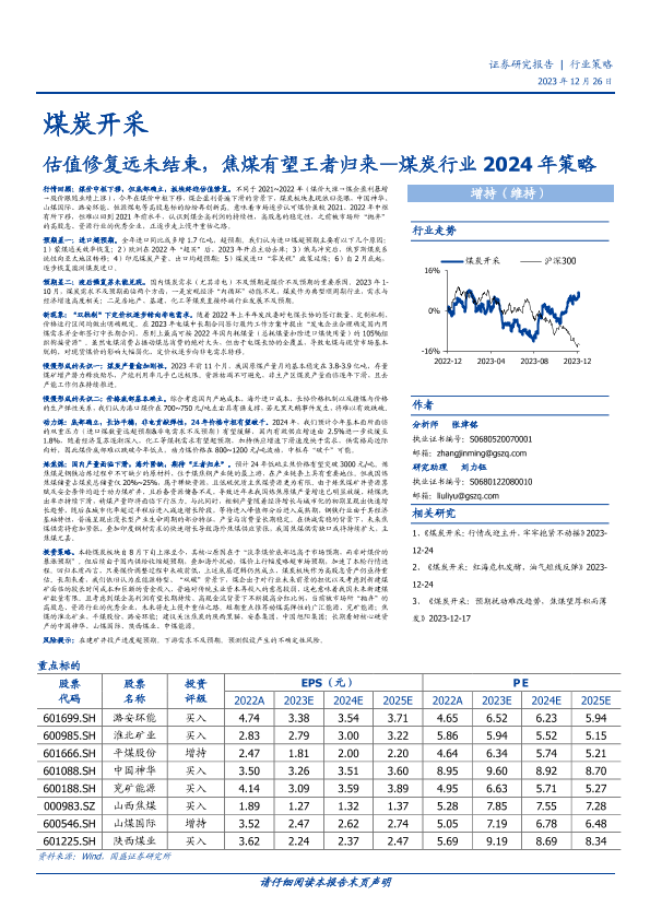 【国盛证券】【20231226】煤炭行业2024年策略:估值修复远未结束,焦煤有望王者归来-56页