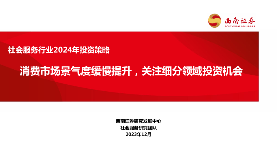 【西南证券】【20231227】社会服务行业2024年投资策略:消费市场景气度缓慢提升,关注细分领域投资机会-34页