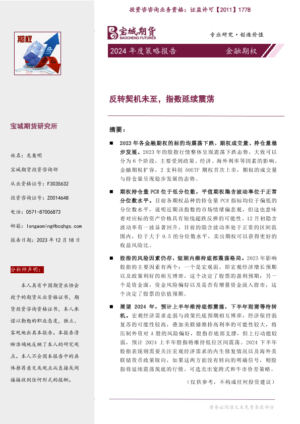【宝城期货】【20231218】金融期权2024年度策略报告:反转契机未至,指数延续震荡-22页