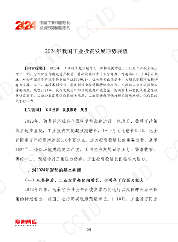 【中国工业和信息化发展形势展望系列】【202310】2024年我国工业投资发展形势展望-11页