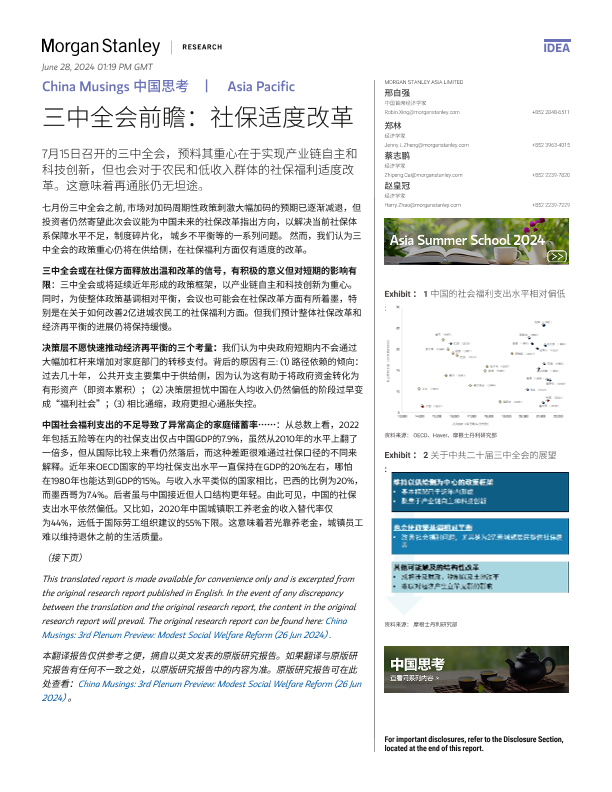 【Morgan Stanley】【20240626】三中全会前瞻:社保适度改革-4页